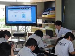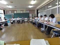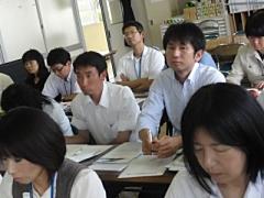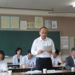 <計画訪問1「学校概要説明」>1校時、研修室で学校側(教頭、事務長、主幹教諭と私)から「学校概要説明」を、来校者に説明いたしました。最初に私の方から本校に実態とMISSION「Happiness」を考えた経過と現在の推進の状況を説明させていただきました。小川教頭の方からは「本校の努力点と具体策」「生徒指導」「学校評価」等ついての説明をしました。青木主幹教諭からは、本校の特色ある「教育課程」全般についての説明をさせていただきました。 約20名の来校者の方々がどのように本校をイメージされたでしょうか・・・?!。