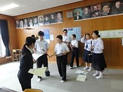 <計画訪問「全体会」>昨日の計画訪問時の「全体会」での講評をいただきました内容について概要を記載いたします。吉成教育事務所長様から5点、お話をいただきました。1点目・・・「Happiness」危機意識をもって取り組んでいます。「矢中ブランド」など良さを伸ばしていく考え方や校長の熱い思いが伝わってきます。「あいさつ」できる生徒たちに圧倒されました。 2点目・・・工夫され特色ある教育課程が編制されています。 3点目・・・生き生きと明るく、勢いがあり大きな声で発言していました。 4点目・・・全校体制で生徒指導がなされている。全体的に落ち着いていました。 5点目・・・諸帳簿関係はおおむね良好でした。 大森教育長様からは 点、講評をいただきました。1点目・・・自転車の乗り方など、市内での生徒たちのようすがよくなっています。 2点目・・・あいさつができることが基本であると考えます。 3点目・・・Happinessは感覚、ほれる、教育愛、喜び、波長とか響き、空間とかもあるのでしょうか。 などのお話をいただきました。 今年度の私の考える「Happiness」な学校作りについて、問題や指摘もなく、好評をいただきましたので、今後自信をもって推進していこうと考えています。 2日間にわたり、御来校いただき御指導をいただきました先生方に感謝を申し上げます。