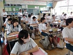 <計画訪問3「3校時 授業研究風景」>3校時の授業研究の授業者と教科を写真の順にお知らせいたします。 小林哲先生(保健体育科2年1組) 齋藤時範先生(技術科3年5組) 和氣緑先生(学級活動7組) 吉永貴臣先生(社会科2年3組) 塚原祐二先生(数学科3年3組) 津田仁志先生・伊藤敦子先生・クリスタル先生(総合的な学習の時間3年1組) 大澤恒久先生(理科1年1組) 鈴木健先生(道徳1年3組) 末廣明久先生(英語科1年4組) 印南眞由美先生(国語科1年5組)でした。吉成事務所長さんと大森教育長さんを5分刻みで、10の教室をご案内させていただきました。