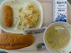 <給食コーナー「今日の献立」>コッペパン、ピーナッツクリーム、牛乳、インディアンロール、五目ビーフン、中華風コーンスープでした。 今日のメニューのコンセプトは「中華」なのだと思います。 「五目ビーフン」は、我が家ではなかなか食卓に上がらないメニューで「Happiness」な気持ちでいただきました。今日の給食は、横浜中華街で「中華ランチ」をいただいているようなリッチな気分でした。