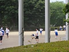 <校長室コラム「昼休みのようす」>もくもくもくと白や灰色の雲が,空のほとんどを覆っていますが、時折、夏の太陽が顔をのぞかせてくれます。 南からの風は、清々しい草原の風を思わせます。 さて、上の3枚の写真は今日の昼休みの校庭のようすです。 今年度の矢中の子供たちは、半数以上が外に出て「ボール」を使った遊びをしています。 元気とパワーを感じる子供たちです。