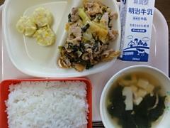 <食育コーナー「今日の献立」> ご飯、牛乳、てんぐにら まんじゅう、野菜のマーボー炒め、かんぴょうの味噌汁でした。 「てんぐにら」って何かな? と思っていましたが、大田原特産の「にら」であることが分かりました。食べてみると、幾分、甘みがあり、臭みが少ないような感じでした。
