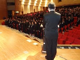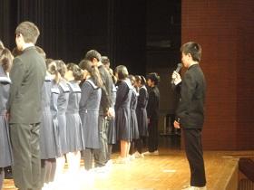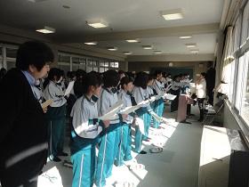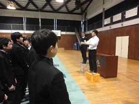 続いての、水越先生からの話は、卒業式に向けての全校合唱についての話でした。音楽科を担当している先生からは、2年生への期待を込めての卒業式の歌でのベストパフォーマンスを発揮してほしい旨の話でした。