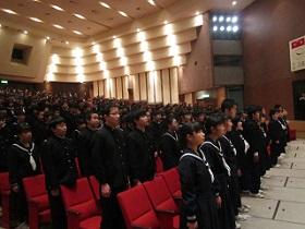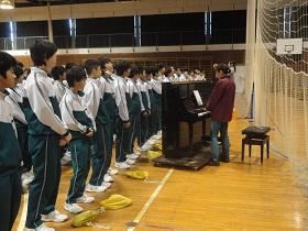 2月27日(月)より、卒業式に向けて全校生合唱練習が始まりました。体育館に全生徒が集まり、卒業式歌「仰げば尊し」と全校合唱「大地讃頌」の練習を行いました。初めての全体での練習でしたが、素晴らしい音色が体育館に響いていました。