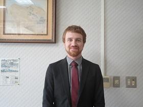 今日から、グレッグ先生の後任のALT「ジョーダン・ベイツ」先生が着任し勤務が始まりました。今朝の職員打合せの冒頭、ジョーダン先生の自己紹介がありました。