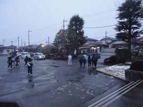 部活動は、17時に終了し17時15分に下校しました。天気予報では、このあとも、みぞれや湿った雪が降りやすいとのことです。積もる可能性は低いですが、あすの朝にかけて路面が凍結する恐れがあります。スリップ等、足を滑らせないよう十分にご注意下さい。