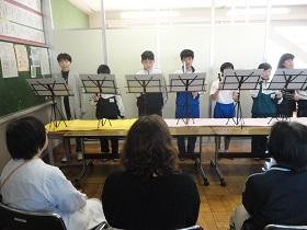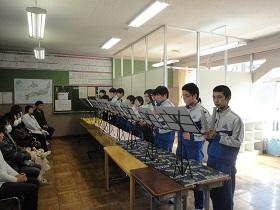 今日の昼休みを利用し、8・9組生徒によるトーンチャイムのミニミニコンサートがありました。先日の合同お別れ会で披露した曲を、職員・保護者向けに演奏してくれました。