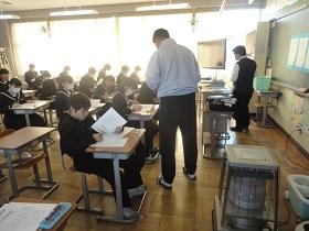 本校では、定期テストに向けて、テスト勉強に意欲的に取り組む生徒を育成することや、各教科の疑問点が解消できるよう支援することを目的に「テスト前学習会」を、昼休みを利用して実施しています。担当の先生に質問したり、集中して問題を解いていたりする姿から、学習に対してきちんと向き合っている気持ちが感じらました。明日から、2学期末テストが実施されます。今年度、最後の定期テストですので悔いを残さないよう取り組んでほしいものです。