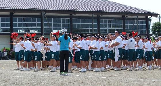 また、今年度復活し全校生で歌った“矢中応援歌”の練習では、まずは応援団員が万年先生の指導を受け、一生懸命声を張り上げて歌えるようになっていきました。記念すべき70周年の本番では、全校生が紅白団長の指揮で、和太鼓に合わせて全員で堂々と歌うことができ、応援団員も満足そうでした。