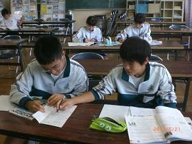 1年生にとって初めての中間テストでしたが、テストは、国語・社会・数学・理科・英語の5教科を2日間に分けて行いました。