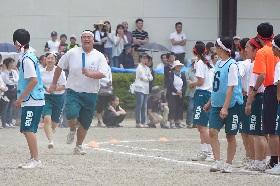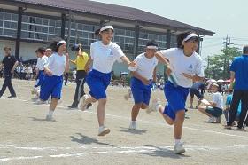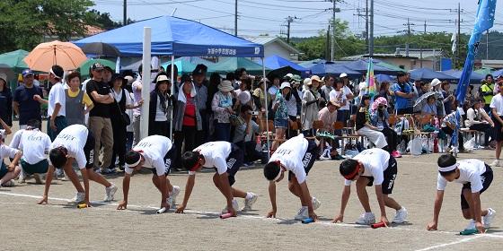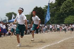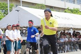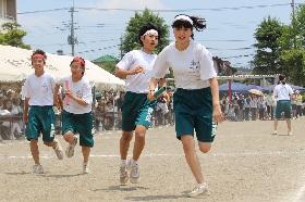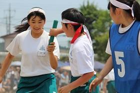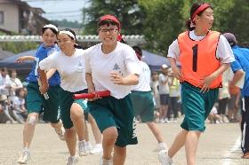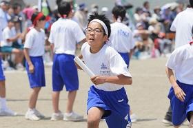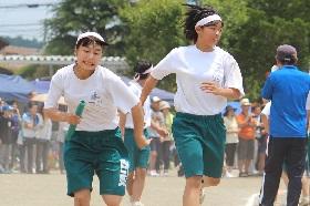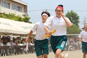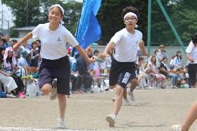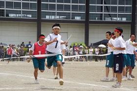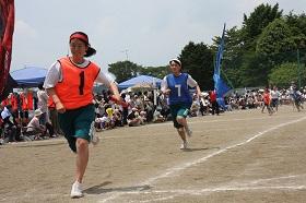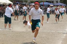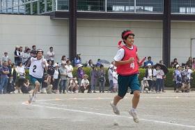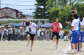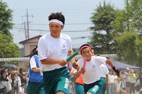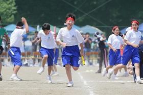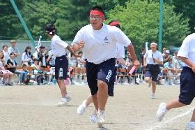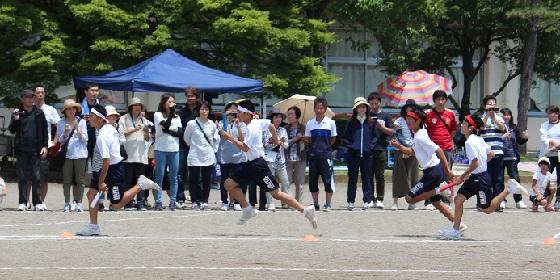 先日行ったスポーツ大会での結果を振り返り、各クラスとも運動会に向けてリベンジしようと意気込みも相当なものが伺えました。学年が上がるにしたがい、バトンパスの技術や迫力も増し、白熱したレースが展開されました。1学年のレースには、教職員チームも飛び入り参加し、先生方の懸命な走りとPTA会長さんの協力も得て2位でゴールしました。