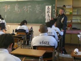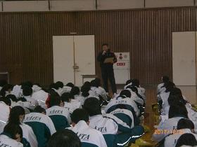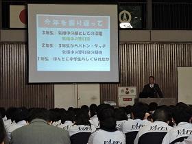 続いて学校長からの話を行い、今年を振り返るとともに新しい年を迎えるに当たっての心構えについての話をしました。そして、明日からの“冬休み”を迎えるに当たって、生徒たちには
