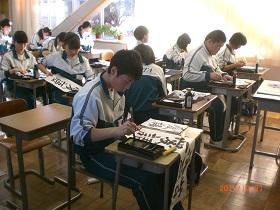 新年恒例の「書き初め展覧会」を控え、各学年とも国語科では「書写」の授業が行われています。書写指導室を使って、指導は国語科の教科担任が行っております。