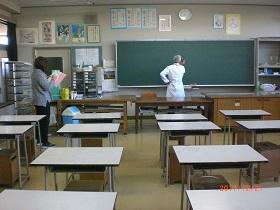 文部科学省からは、『学校保健安全法』の中で、学校環境衛生基準が定められており、法令に基づいて照度検査を行いました。検査は、養護教諭が立会い黒板9か所、室内(机上)9か所を規定する照度計「デジタル照度計」を用いて測定しました。