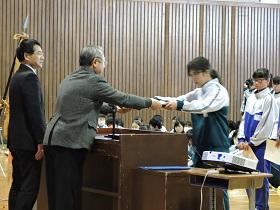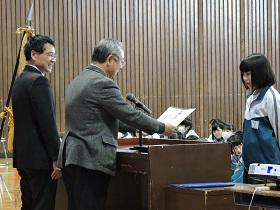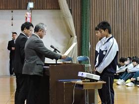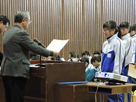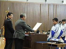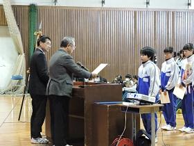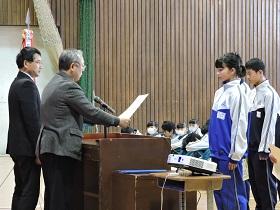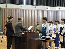 初めに各種大会・コンクール、作品展などの賞状の伝達を行いました。