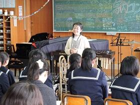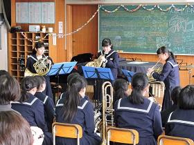 12月27日(水)、吹奏楽部の学内コンサートがありました。午前中雪が降り、足元が悪い中でしたが、第2音楽室には、出勤している教職員・部活動練習後の生徒や多くの保護者・家族連れの方が見え、約2時間の演奏を楽しみました。冒頭には、部長さんからの挨拶があり、保護者や日頃お世話になっている方々への感謝の言葉も述べられました。