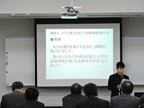 2月16日(金)に、各地区から推薦された研究発表の「理科研究中央発表会」が、県総合教育センターにて開催されました。中学校の部には7校の参加があり、本校からも地区の推薦を受けて1年生の坂主君が参加しました。地区理科展での発表後にもプレゼン資料の改良や発表の仕方などについて改善したことを含め、これまでの研究の成果を堂々と発表しました。審査の結果、「優秀賞」をいただくことができました。おめでとうございます。