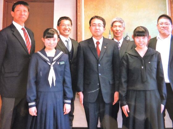 懇談では、先日「ハンターマウンテン塩原」で行われたアルペンスキーの県中学総体での結果と全国大会での様子などについて報告いたしました。齋藤市長さんからは、2人への労いと高校へ行っても活躍することの期待を込めた激励の言葉をいただきました。
