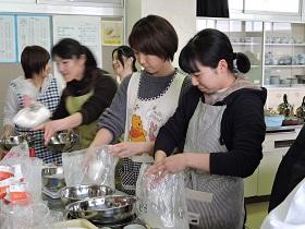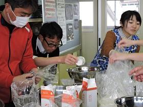 今回は、職員が自らお菓子作りを体験し授業や学校生活に生かせることをねらって“スコーン”を作りました。講師には、昨年度も“生チョコ”作りでお世話になった「パン工房グランディール」の坂本先生をお願いしました。