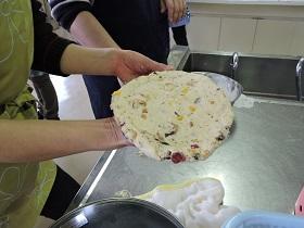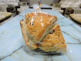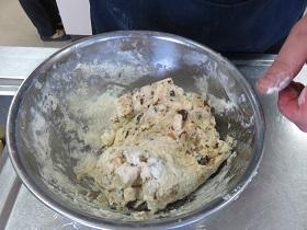 スコーンには、ナッツ類・チョコチップ・レモンピール・オレンジピール・ラムレーズン・チーズなどから、好みのものを選んで入れました。入れるものや混ぜ具合によって、焼き上がりの色やサックリ感、しっとり感が違うスコーンが出来上がりました。作っている時もスコーンを味わっている時も、職員には笑顔があふれていました。家庭でも作ってみたいと思います。