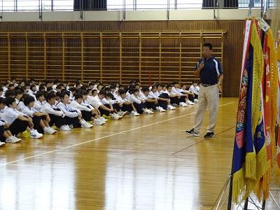 朝は、夏休み中の各種大会・コンクール等の表彰から始まりました。
