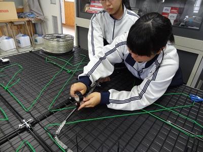 緑の線に沿ってチューブを這わせ、結束バンドで固定していきます