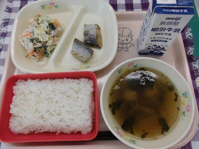 今日の献立は、「ごはん 鰆のカレー風味焼き 春雨マヨネーズサラダ 鶏団子すまし汁 牛乳」でした。