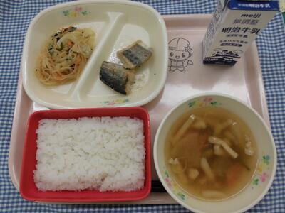 今日の献立は、「ごはん さわらの西京焼き 春雨サラダ のっぺい汁 牛乳」でした。