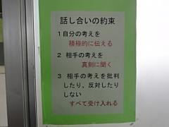 <学力ステップ・アップ1>1年生の各教室、廊下側窓ガラスにこのような掲示(写真)がありました。 「話し合いの約束」、「話し合いの進め方」について、学年が同じベクトルで指導をすすめています。 表現力の向上や「言語活動」の充実につながるものと期待しています。