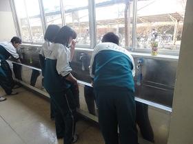 年度、最終の委員会活動ということで、各委員会とも3年生が抜けた後ですが、今年度の活動の反省と来年度へ向けての改善策などを話し合っている委員会もありました。生徒会役員は、21日に予定している「新入生オリエンテーション」に向けての打ち合わせを行っていました。新入生が不安の無いようにしていこうという気配りが感じられました。美化委員会・緑化委員会では、水はまだ冷たさが感じられる中、水道回りの清掃やプランターの整備を行いました。今年度の生徒会活動のテーマ「活力あるHappinessな矢板中学校を作る」に向け、各委員会が活力ある矢板中学校になるために、よりよい学校生活づくりに自主的・実践的に取り組んでくれたことに感謝します。