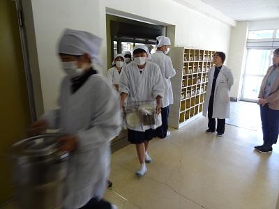 1・2年生はエレベーターで各階に給食を上げますが、3年生は給食室まで取りに来ます(^_^;)