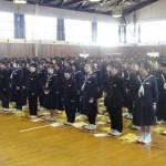 <着任式>8時45分から最初に「着任式」を行いました。私たち新たに着任した19名について、小川教頭からご紹介をいただきました。紹介後,一人一人中央の演台で生徒たちに向かって自己紹介をしました。 11年ぶりの生徒たちは、整列もできていて静かに先生方の話を聞く生徒たちでした。