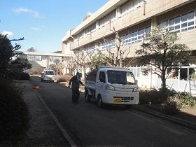 先週から、矢板市シルバー人材センターによる樹木の剪定が始まりました。校舎前の“松の木”の剪定や中庭の“ソネ”や“モッコク”の枝おろしを行っています。今日が最終日ということで、駐車場脇の“コブシ”や校庭の“トチノ木”などの枝おろしを行ってくださいました。まだまだ高原下ろしが吹き付ける肌寒い中、ご協力をいただき感謝いたします。ありがとうございました。