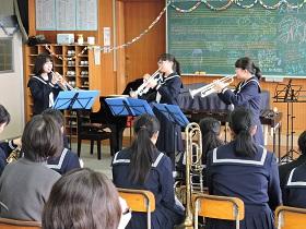 12月27日(水)、吹奏楽部の学内コンサートがありました。午前中雪が降り、足元が悪い中でしたが、第2音楽室には、出勤している教職員・部活動練習後の生徒や多くの保護者・家族連れの方が見え、約2時間の演奏を楽しみました。冒頭には、部長さんからの挨拶があり、保護者や日頃お世話になっている方々への感謝の言葉も述べられました。