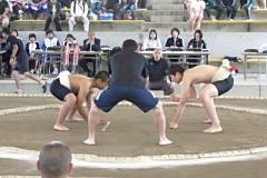 <校長室コラム「県春季相撲大会の応援に」> 今日は、県春季大会3日目です。県総合運動公園では、相撲大会と野球大会(準決・決勝)がありました。 私が「相撲場」に到着すると、21チームが3ブロックに分かれての予選リーグをやっていました。団体戦に出場している学校は、すべて県北地区で、県央と県南から出場がありませんでした。