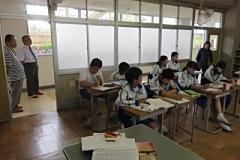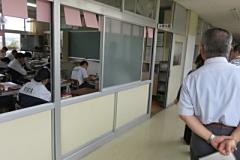 最初に、校内を巡回し、授業のようすを見ていただきました。生徒たちが、真剣に授業に参加している姿や「学び合い学習」(写真5,6,7,8枚目)をしているようすをご覧いただきました。
