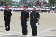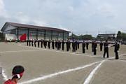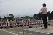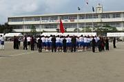 <運動会1「快晴の中での運動会スタート」> 快晴の中での運動会となりました。齋藤県議をはじめ、大森教育長、市議、小学校の校長先生方、多くの地域の方々の御来賓をいただく中での開会式となりました。