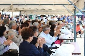 アトラクションの前には、御来賓の皆様には「福引き」の競技に参加していただきました。続いて、生徒を代表して福祉委員長が地域の皆様やお祖父ちゃん・お祖母ちゃんに歓迎の言葉を述べた後、恒例になっている吹奏楽部による特別演奏を聴いていただきました。