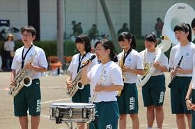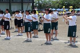 吹奏楽部員は、運動会の練習の合間を使って、少ない練習時間で一生懸命練習した曲をドリル演奏やダンスパフォーマンスを交えて楽しい演奏を披露してくれました。