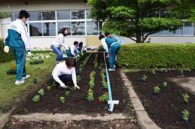 3学年生徒と保護者・職員が汗を流しながら、花壇やプランターの整備、昇降口・体育館や校舎のトイレ清掃、校舎周辺の除草や側溝掃除、駐輪場のペンキ塗りなど熱心に作業に取り組んでくれました。