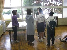 集団演技の要素を含んでいることから、体操の隊形に開く時や元の位置に戻る時には「ハイ!」という返事の声とともに俊敏な動きを意識するとともに、8番目の“手足の運動”の時には「1・2・3・4・・・」の番号の声も“全力”でかけながら、元気よくキビキビと行うことができました。