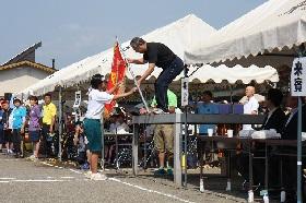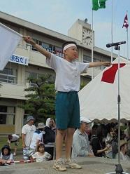 そして、運動会の係として競技・演技の入退場の指揮を学級委員会のメンバーが担当しましたが、笛と紅白の旗を合図に指揮者の役割をしっかりと果たす姿も立派でした。