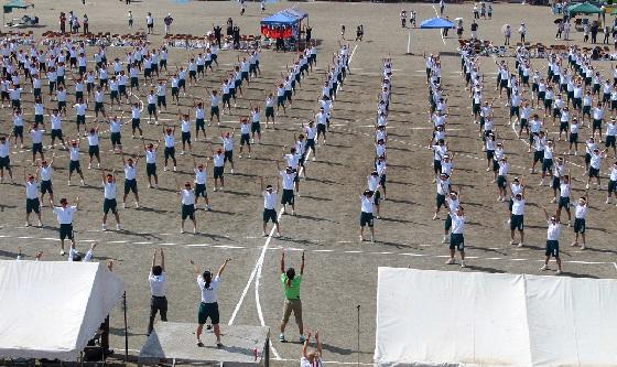 今回の「エピソード2」は「ラジオ体操第1」を紹介します。準備運動として全校生と職員、更に来賓の皆様にも参加していただき元気よく行いました。