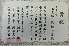 写真6枚目・・・昨日の県北中学校剣道大会で、剣道部は男子の部「第3位」入賞を果たしました。