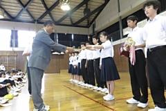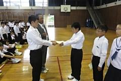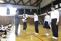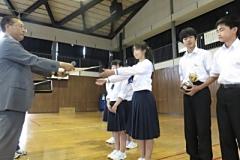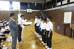 「漢字コンクール」表彰や、他の大会の表彰もあったりして、前に出て表彰を受けた生徒は「57名」いました。約25分間の表彰時間でした。