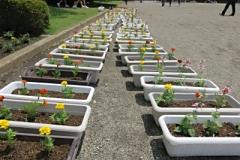写真3,4枚目・・・生徒会緑化委員会で種から育てた花苗のプランター(約100個)を市内の官公庁や施設、企業などに配布したいと考えています。近日中に、配布できると思います。