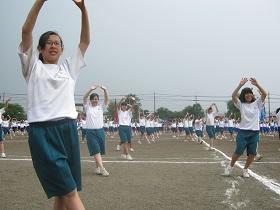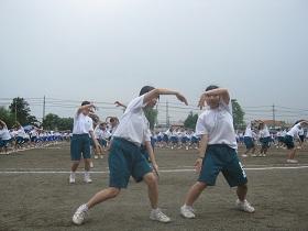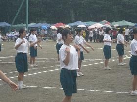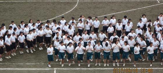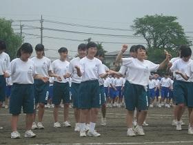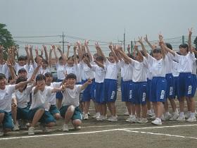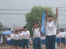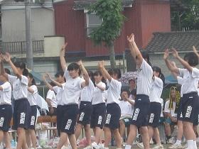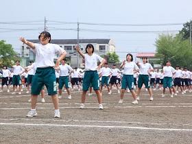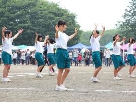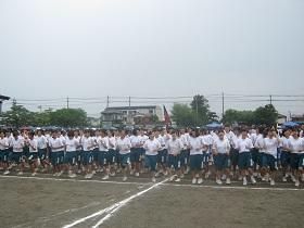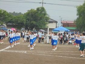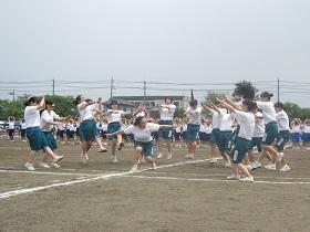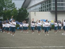 入場には、流し踊り風に「矢板音頭」を踊りながら入場しましたが、突如にわか雨が降り出し“水もしたたる・・・”がドンピシャでした。「Happiness」では、雨に負けないくらいの元気いっぱいの力強い踊りで、クラスごとのパフォーマンスでも一人一人が表情よくタイトルにふさわしい矢中生をアピールしていました。更に、退場でも「いきものがかり」の『じょいふる』に合わせて弾けるように退場する姿からも完全燃焼できました。