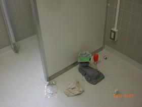 「トイレ改修工事進捗状況」⑪(床シート張工事他)