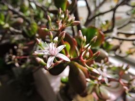 二十四節気の一つ「雨水」を2月19日に迎えました。「雨水」とは、雪が雨に変わり、雪解けが始まるという日で、忍び寄る春の気配に草木が蘇るという意味があります。暦の上では、冬から春へ移る段階が進んでいます。春の陽射しも、次第に日脚も伸びるとともに、ピョンチャンオリンピックでの金メダルのように、日差しの輝きが強まって、日中も一段と明るく感じられるようになってきました。校長室の「金のなる木」にも花芽がつき咲き始めてきました。