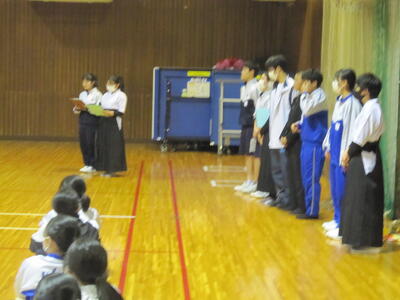 悪天候にもかかわらず、卒業した3年生も含め、多くの生徒が集合してくれました。